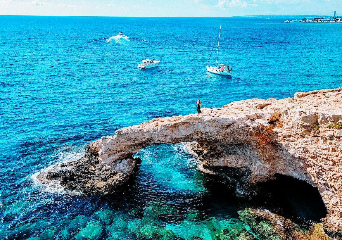À l’extrémité est de l’île, entre Agia Napa et Protaras, le Cap Greco dévoile une autre Chypre : plus brute, plus minérale, presque sculptée par le vent. Les falaises calcaires plongent dans une eau translucide. Les randonnées y révèlent une succession de points de vue qui coupent le souffle. La chapelle blanche d’Agioi Anargyroi, accrochée au-dessus du vide, semble veiller sur les voyageurs. Le Pont de l’Amour, arche naturelle façonnée par le temps, se reflète dans une mer immobile. À Konnos Bay, les bateaux se balancent doucement, comme posés sur du verre. Au coucher du soleil, tout change : les falaises deviennent roses, puis dorées, et l’air se charge d’une douceur presque palpable. Voilà un endroit qui invite autant à marcher qu’à simplement contempler.